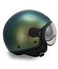 Casco jet verde cangiante MM Independent: effetto camaleonte, doppia visiera
